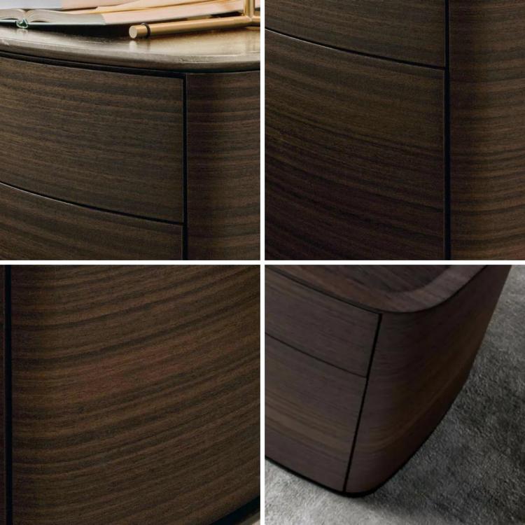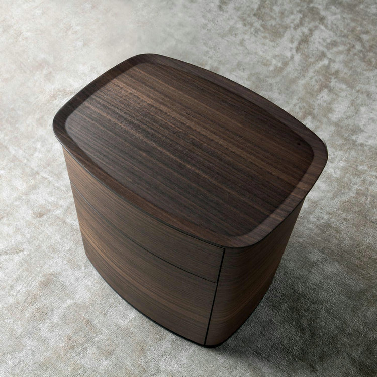 The top can be in wood or marble. A wooden bedside unit with two drawers with a pressure opening.