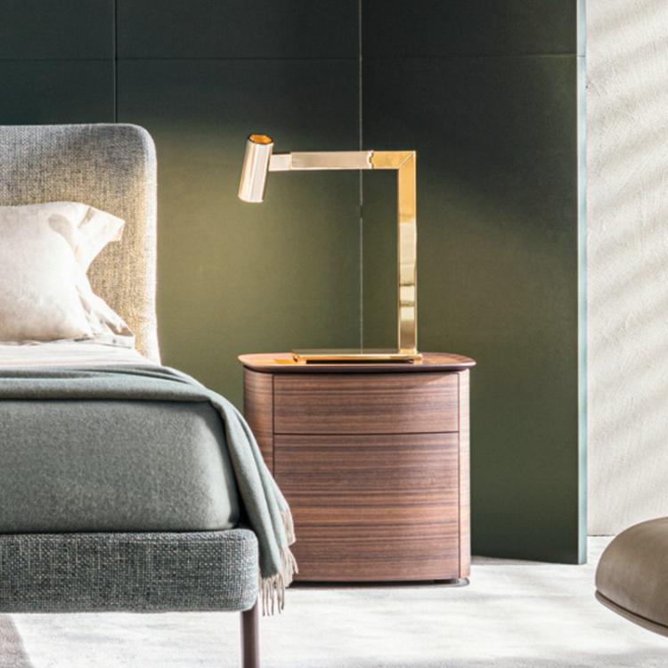 4040 Bedside Table is a masterful design by Dante Bonuccelli, tailored to be the perfect bedside companion for the diverse range of beds from Molteni&C. This generously proportioned unit boasts a sturdy wooden framework and drawers, elegantly resting on a sleek pewter-colored metal base. The top can be customized to suit your preferences, offering a choice between warm wooden tones or the sophisticated allure of marble.